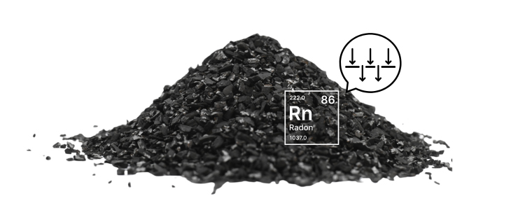 وفي حالة إزالة الرادون، فإن الكربون المنشط لا يمتص الرادون في بنيته بل يلتقطه على سطحه. تسمح عملية الامتزاز هذه بالإزالة الفعالة للرادون والاحتفاظ به من الهواء.